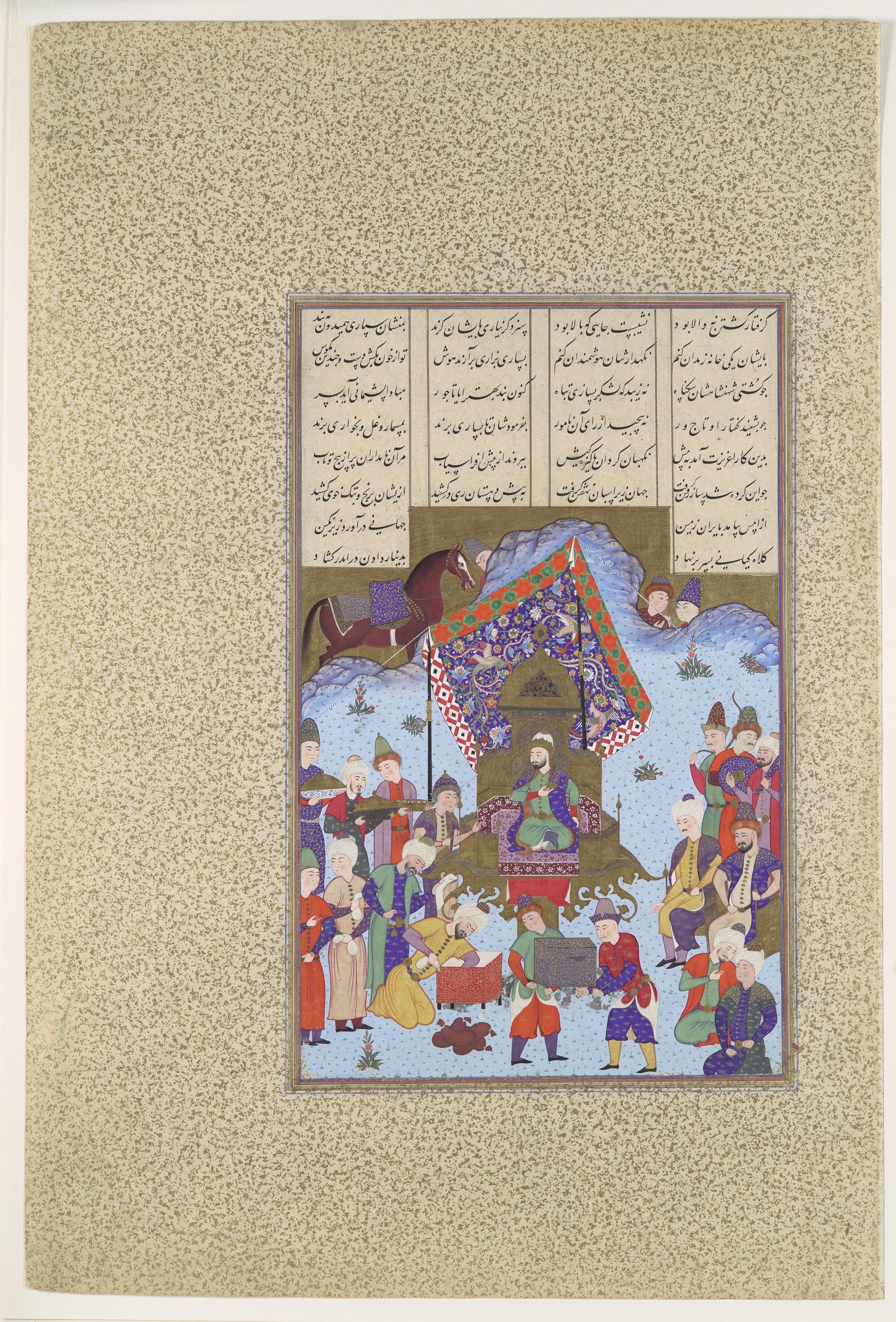 • Title: "Afrasiyab on the Iranian Throne", Folio 105r from the Shahnama (Book of Kings) of Shah Tahmasp